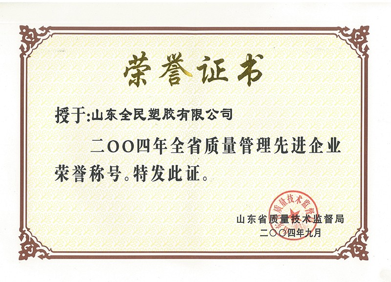省級質(zhì)量管理先進(jìn)企業(yè)榮譽(yù)證書2004.09